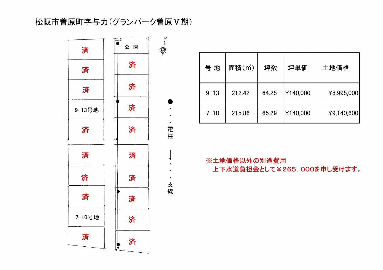 【土地価格以外の別途費用】上下水道負担金として¥265,000を申し受けます。