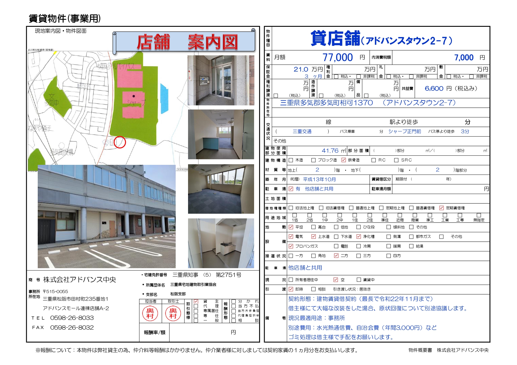 | 所在地 | 〒5150055 三重県 松阪市田村町235-1 アドバンスモール連棟店舗A-2 | |||