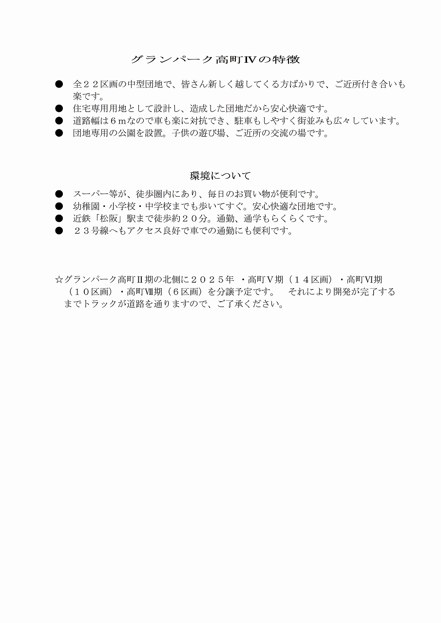 【売買物件 土地】 グランパーク高町Ⅳ期 A-7号地